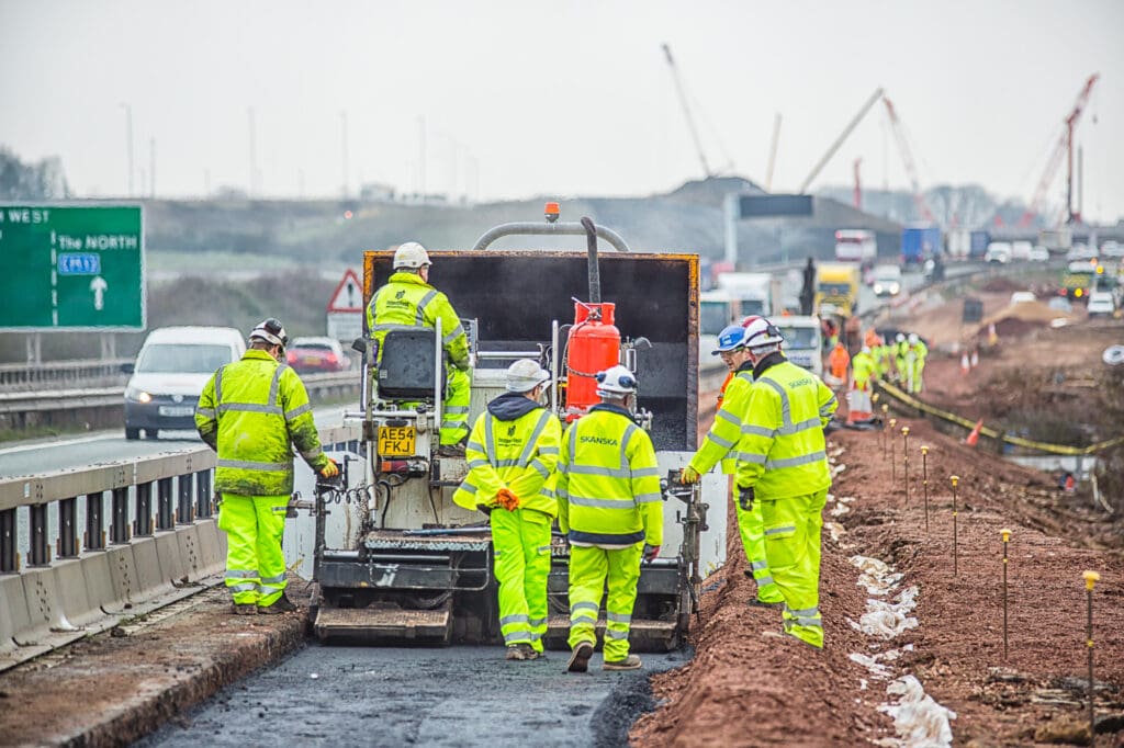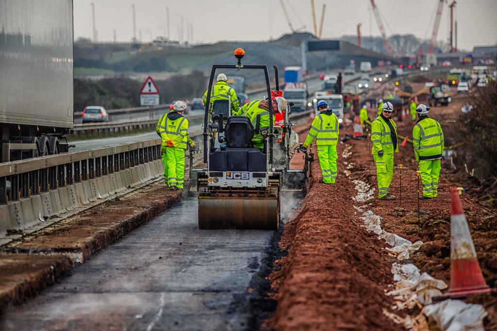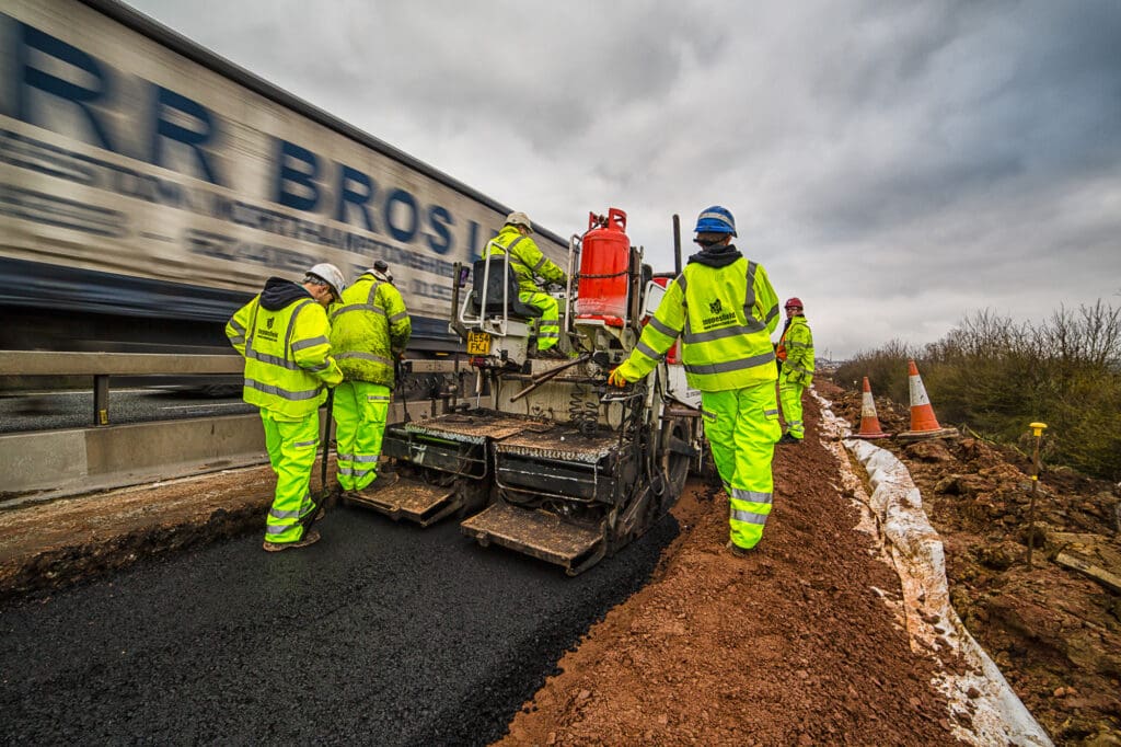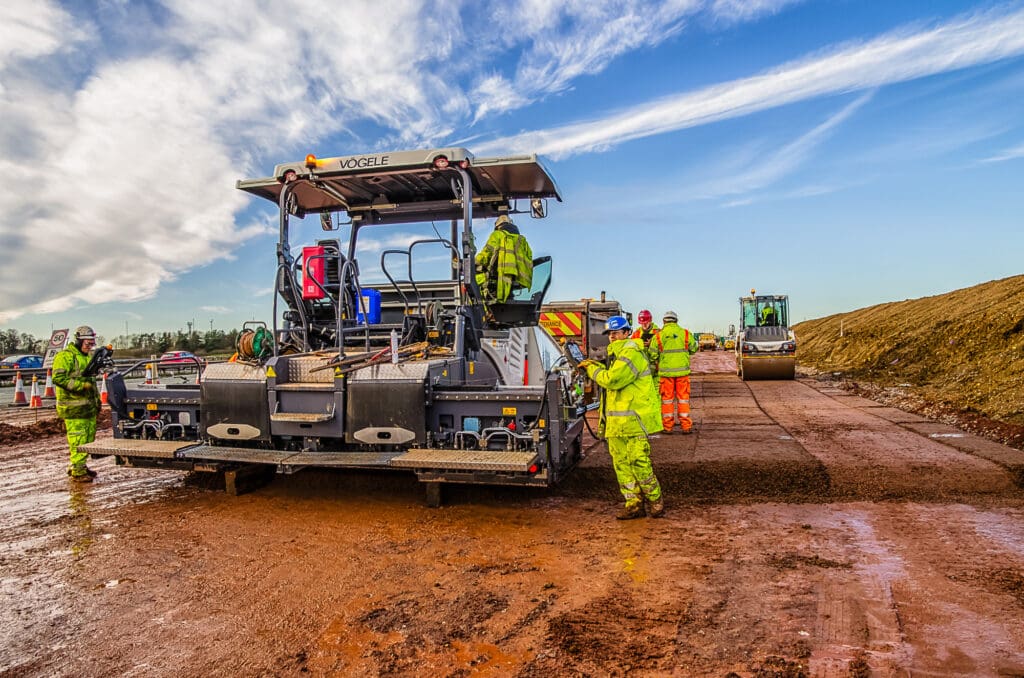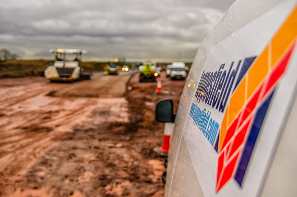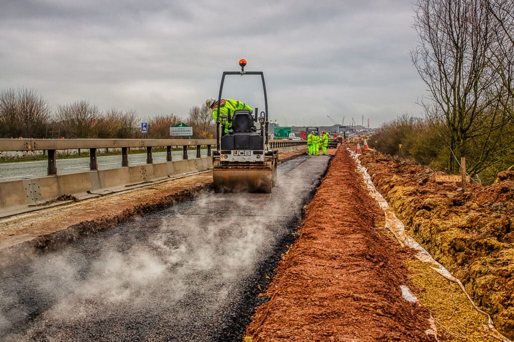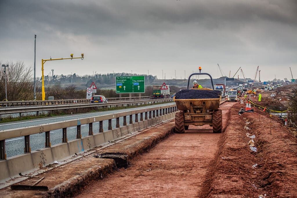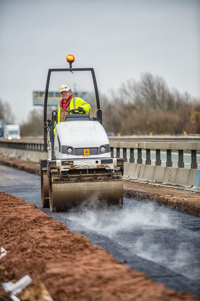 One of a series of shoots for a road construction company, this one on creating a new slip road on the A14/M1/M6 junction. This required a safety course briefing and full PPE before any shooting could commence. Despite the hazardous conditions a full set of photographs was produced for their website and literature.